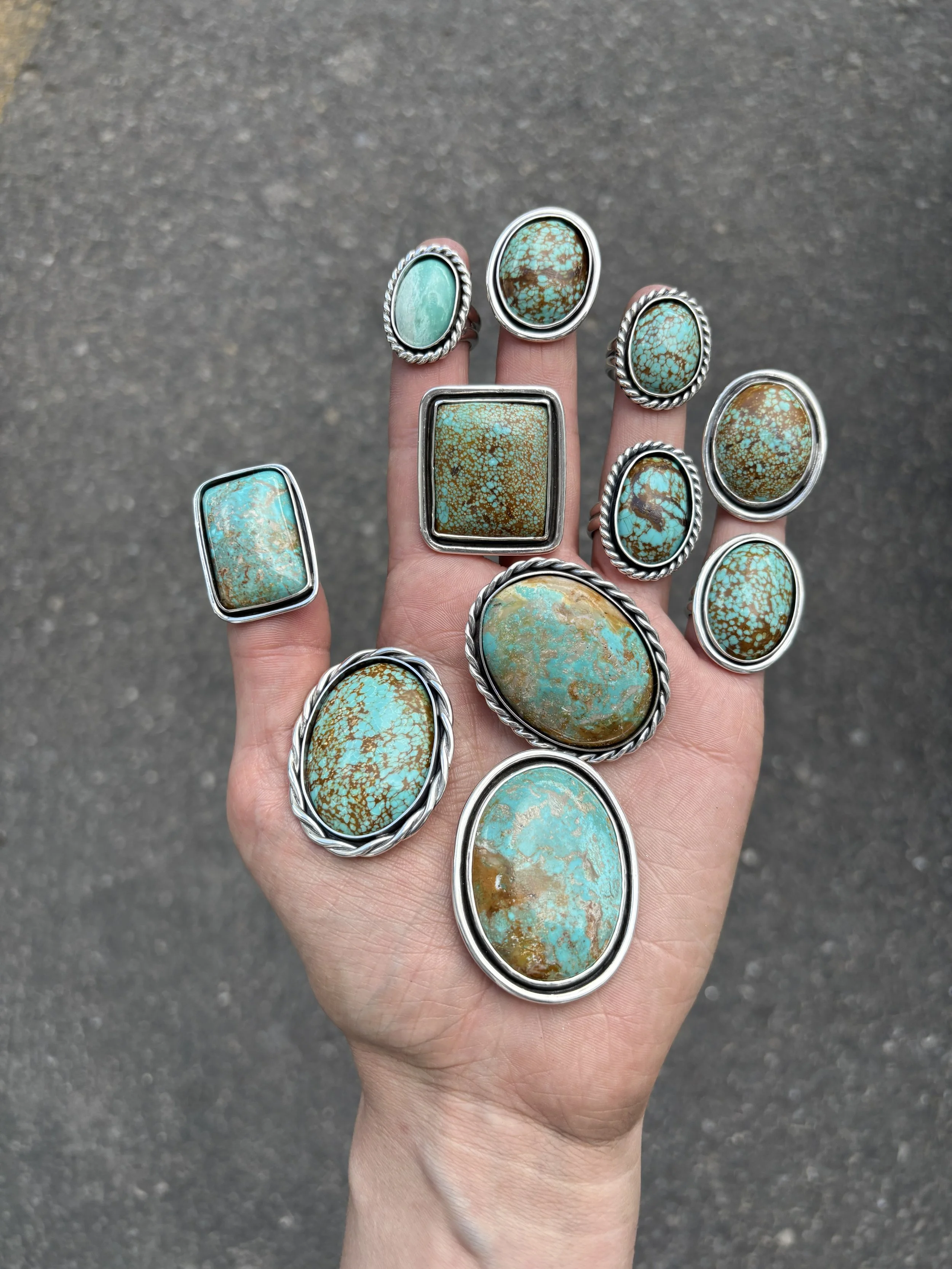 Hannah's elk ivory & Royston Turquoise, cut by Turquoise Matrix